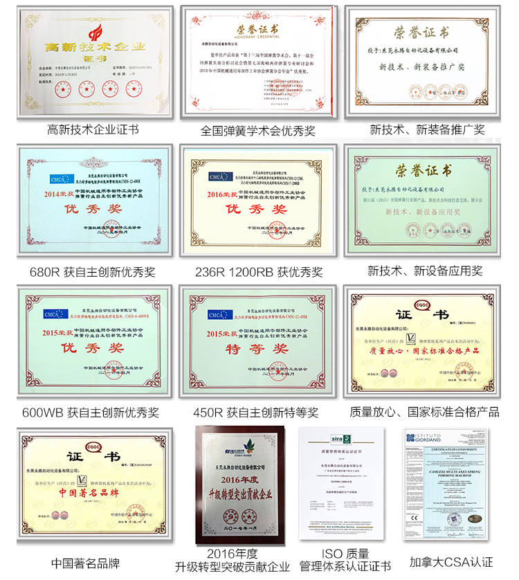 資質(zhì)證書永騰彈簧機系列機型現(xiàn)已獲國內(nèi)外專利局多項實用型專利。
