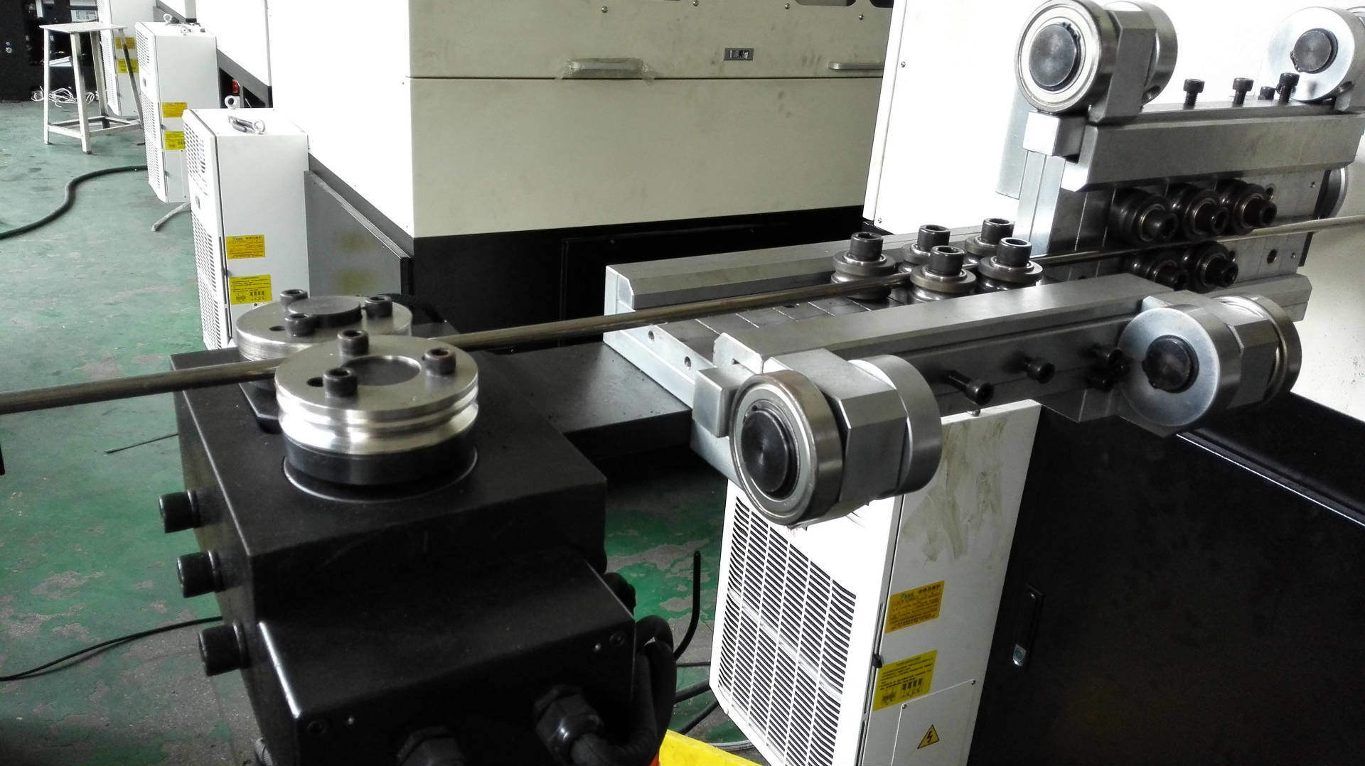 三組送線輪,11.5KW的伺服送線,送線力度足夠完成13毫米以上線經(jīng)的傳送。