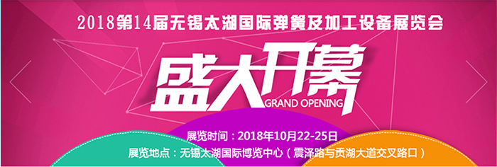 各位新老客戶2018第十四屆無錫太湖國際彈簧及加工設(shè)備展覽會將于時(shí)間:(2018.10.22 ---10.25)在無錫太湖國際博覽中心舉辦。屆時(shí)將吸引來自世界五大洲的彈簧行業(yè)精英人士共同研究、探討彈簧行業(yè)的發(fā)展,同時(shí)來自德國、日本、 中國(香港、臺灣、內(nèi)地)的200家彈簧設(shè)備制造廠家將展示他們前沿的彈簧制造技術(shù)。在此,永騰熱烈歡迎國內(nèi)外彈簧生產(chǎn)、 制造及汽車配件制造相關(guān)行業(yè)的客商光臨永騰展位(展位號:B1-01),共同為推動(dòng)中國彈簧制造工業(yè)的發(fā)展而努力!